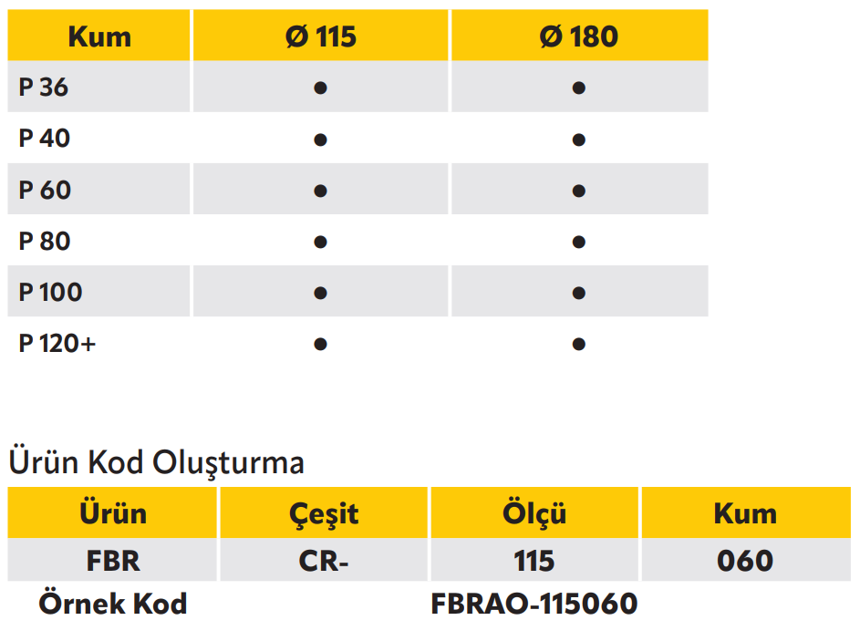 Alüminyum Oksit, genel amaçlı kullanım için dengeli kesme performansı ve uzun servis ömrü sunar. Metal yüzeylerde taşlama, çapak alma ve yüzey hazırlama işlemleri için uygundur. Zirkonyum, yüksek aşındırma gücü ve dayanımı sayesinde hızlı malzeme kaldırma sağlar. Yoğun taşlama ve ağır hizmet uygulamalarında stabil performans sunar. Seramik yapısı ile maksimum kesme hızı ve uzun ömür sağlar. Yüksek basınç altında agresif ve sürekli kesme performansı sunar. Silisyum, keskin yapısı sayesinde sert ve kırılgan yüzeylerde etkili sonuç verir. Cam, taş, mermer, seramik ve demir dışı metaller için idealdir.
